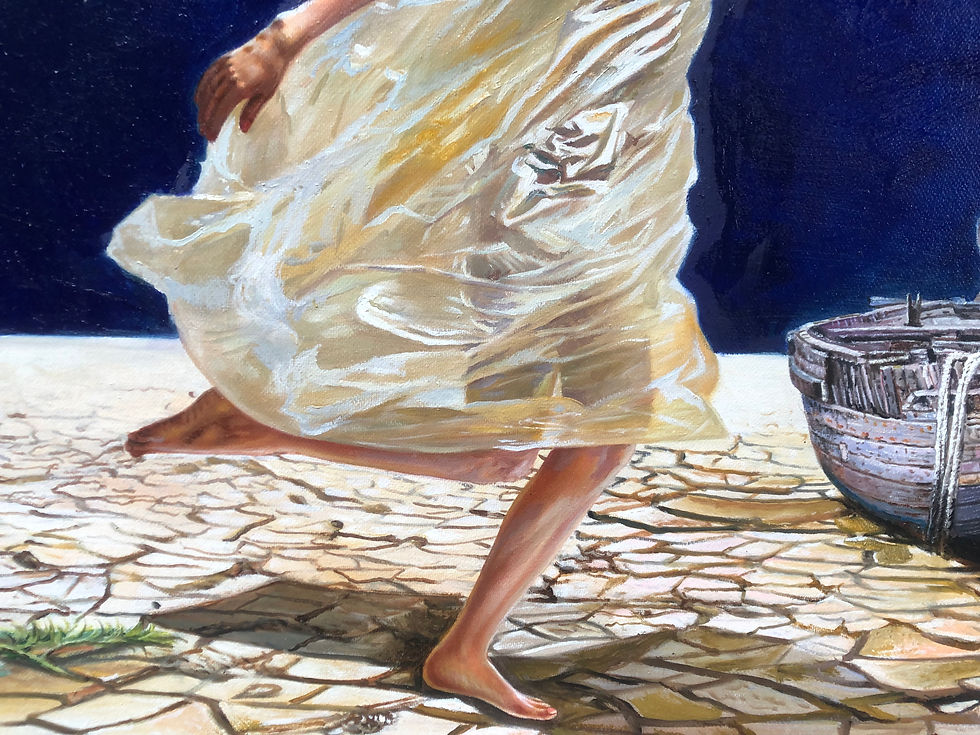 Framed Oil Painting A Boy Riding a Pony Country Scenery